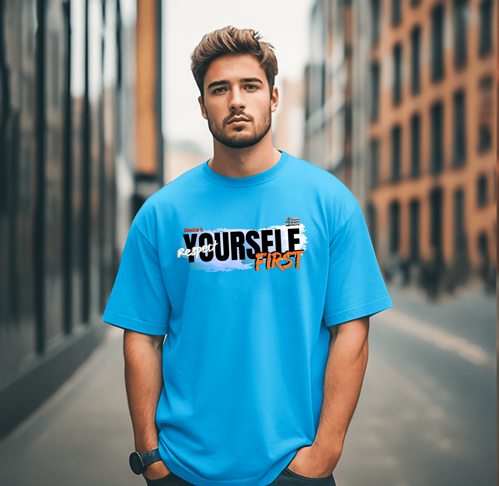 Drop Shoulder T-shirt – Respect Yourself First ড্রপ শোল্ডার টি-শার্ট। ১০০% কটন, ১৮০ GSM, কমফোর্টেবল ফিট। Design by MD. AL REDOWAN।